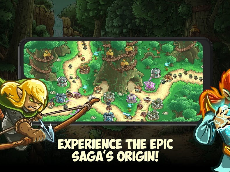 In this prequel, command the elven army to defend the battlefield in a mystical realm. Plan your defense against sea serpents, evil sorcerers, and wave after wave of enemies. Upgrade brand-spankin' new towers & heroes. Use spells, beat challenge and set a defense in epic td battles and boss fights to advance in an epic offline adventure!