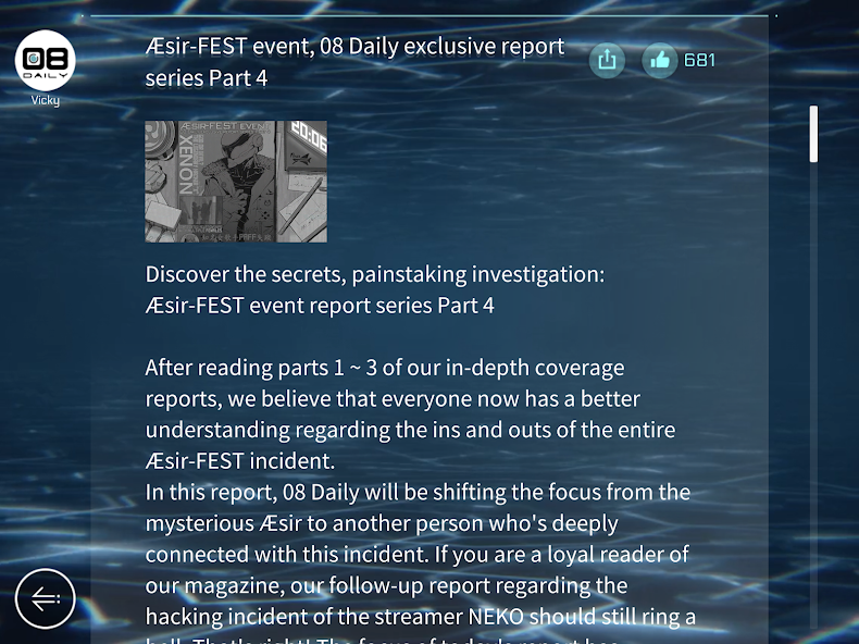 One day, Æsir, who had never shown his face before, suddenly announced that he will be holding the first mega virtual concert —— Æsir-FEST and will invite a top idol singer and a popular DJ as opening performances. The instant the ticket sales began, an unprecedented rush occurred. Everyone wanted to see Æsir's real face.
